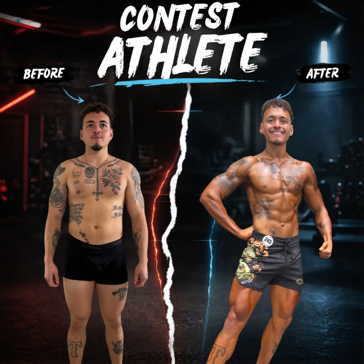 Had worked with prior coaches who lacked communication and structure and had an appetite to be the best version that he could be. Throughout a contest prep he learned how to elevate and structure his days. He gained improved self awareness and now operates with intense drive and focus.